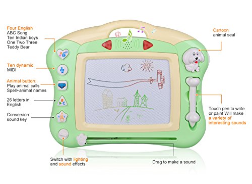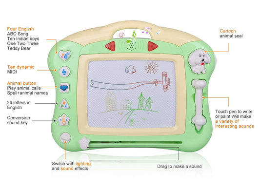 Meland Magnetic Drawing Board - Magna Drawing Doodle Board for Kids Toddlers with Light and Music (Green)