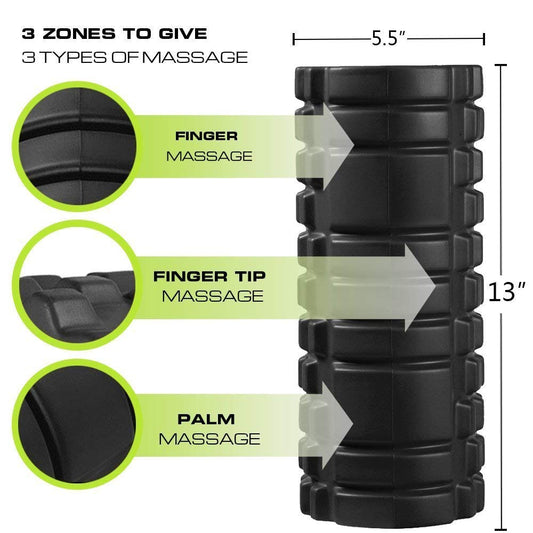 Reehut 2-in-1 Foam Roller Trigger Point Massage for Painful, Tight Muscles + Smooth Rollers for Rehabilitation! Free User E-Book + Free Carry CASE! Black