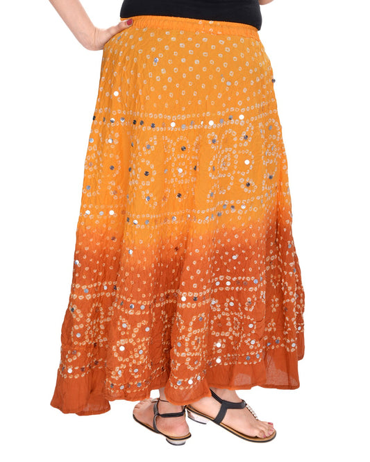 Soundarya Women's Cotton Long Skirt(RS3027, 38, Yellow and Brown)
