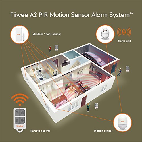 tiiwee A2 PIR Motion Sensor Anti-Burglar Alarm System with Remote Control - 125 dB Siren - Expandable - Home Security