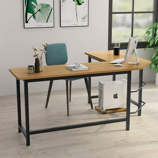 Tribesigns Modern L-Shaped Desk Corner Computer Desk PC Latop Study Table Workstation Home Office Wood & Metal (Teak)