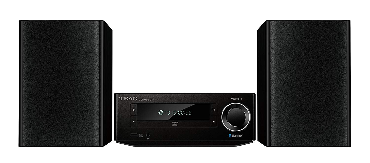 Details: PLEASE NOTE: this device is compatible with Android & Apple devices with Bluetooth connectivity Hook this feature-packed Hi-Fi system up with your TV to complete your multimedia entertainment setup. Connect wirelessly to play audio from your smartphone with maximum convenience! Play DVDs and CDs, listen to FM radio, play files from a thumb drive or convert audio CDs to MP3 via USB. You can also adjust Bass and Treble to suit your listening preferences! FEATURES: * TEAC sound systems * Model: DVD Micro System | MCDV66BTF * Pack contents: * Micro system * Remote control * 2 x AAA batteries * User manual * FM antenna * AV cable * Audio output: 2 x 20W speakers * COMPATIBILITY: Mobile devices with Bluetooth * Interface: USB, coaxial audio, L/R * Playable files: USB media, audio streaming * Disc playback: DVD, DVD±R, DVD±RW, CD, CD-R, CD-RW, Picture CD, VCD * Bluetooth: Yes * EQ control * FM radio * Rip CDs straight to MP3 * Colour: Black * Weight: 6.5kg * Dimensions (approx, cm.): * Main unit: 24.7 x 8.3 x 2.5 (W x D x H) * Speaker: 15 x 22 x 19.7 (W x D x H) * Country of origin: N/A * 12-MONTH MANUFACTURER WARRANTY