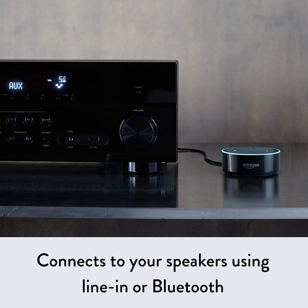Echo Dot can also directly connect to speakers using a 3.5 mm stereo cable or using Bluetooth to add voice control to your home stereo system in the living room or den.